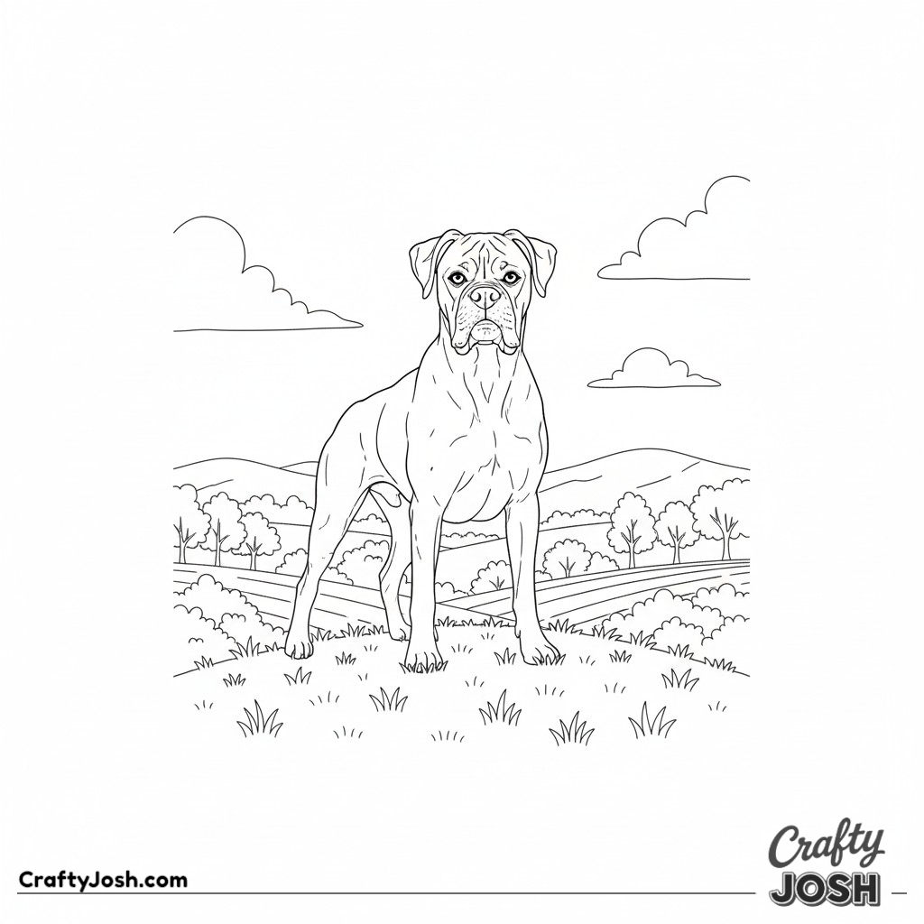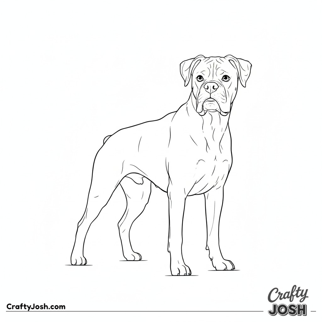 Our Boxer coloring pages capture this breed’s playful spirit, strong build, and expressive face. From energetic puppy poses to alert standing stances, this collection includes a variety of designs to download, print, and color for all ages.