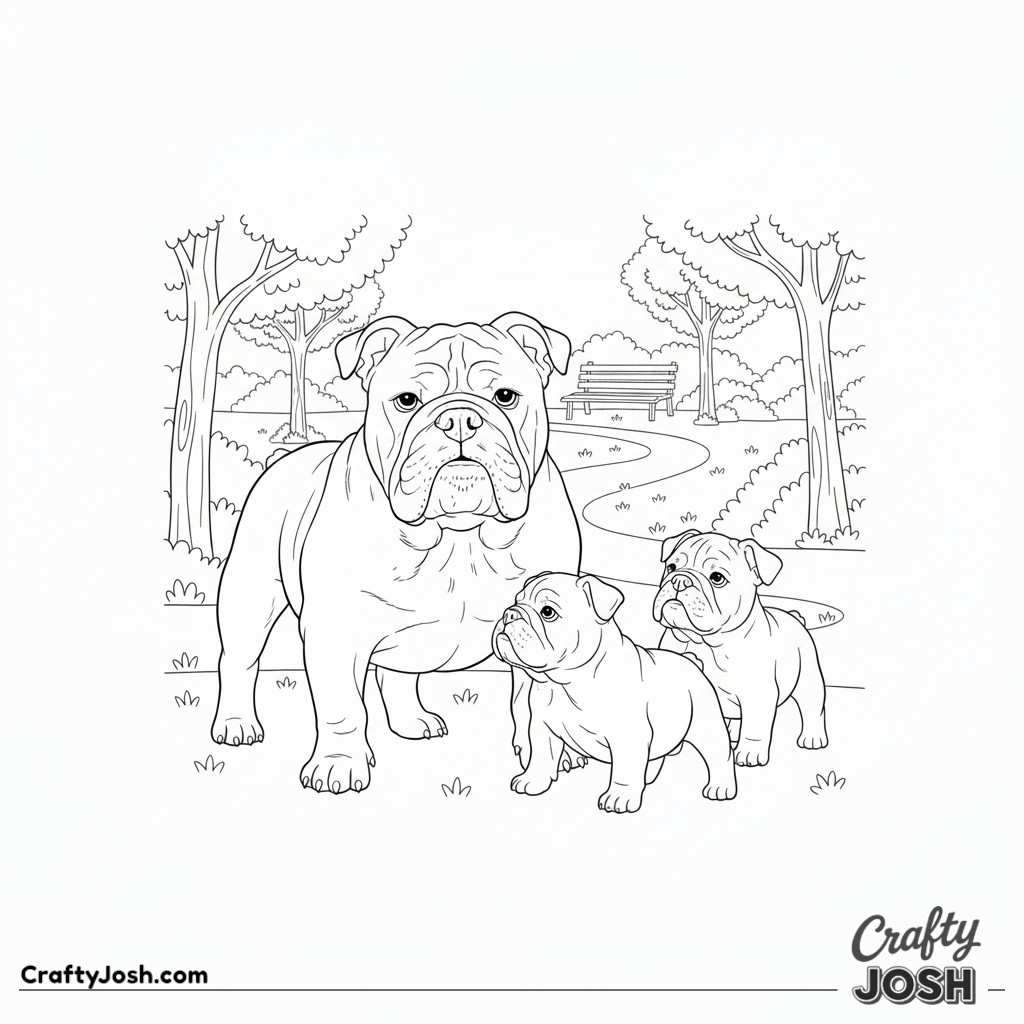 English Bulldogs are known for their wrinkled faces, sturdy builds, and unmistakable expressions. In this collection of English Bulldog coloring pages, you’ll find detailed outlines that highlight their unique features along with simpler versions suitable for younger kids.