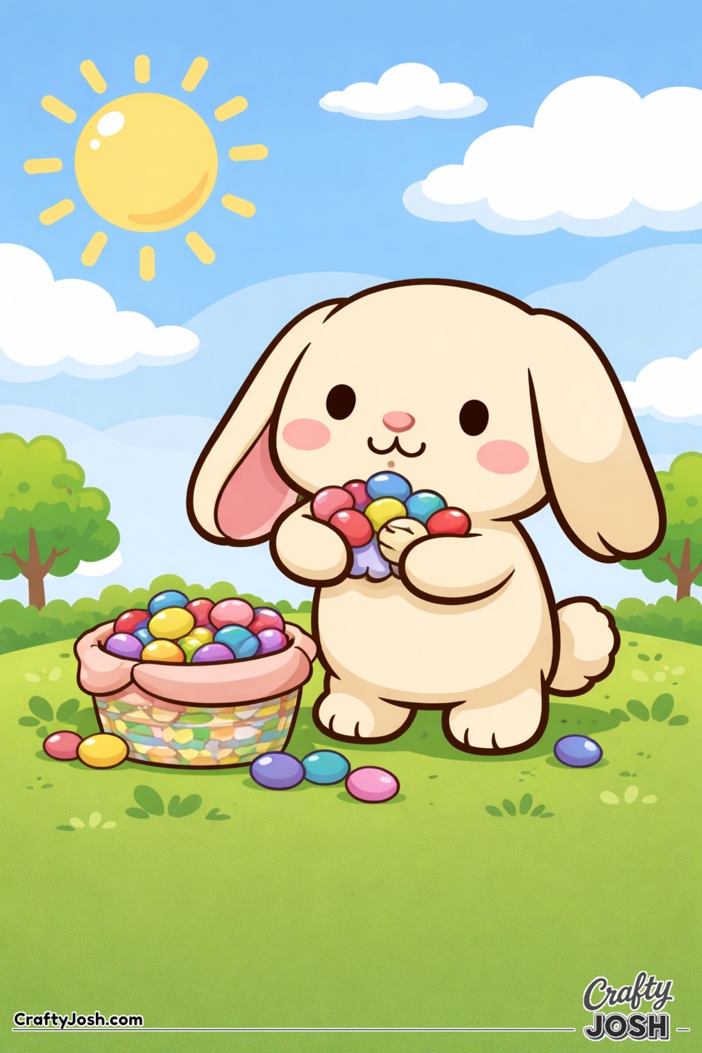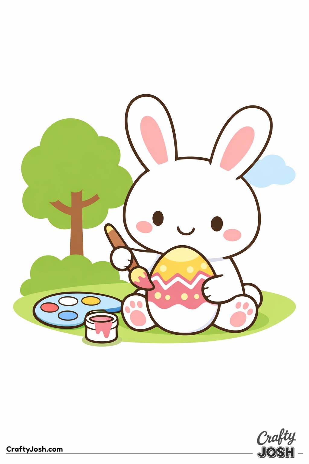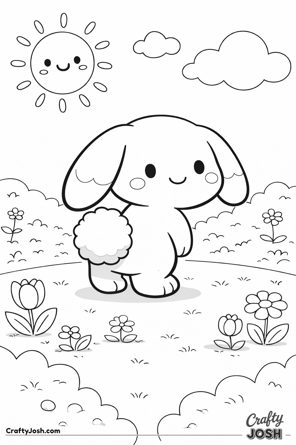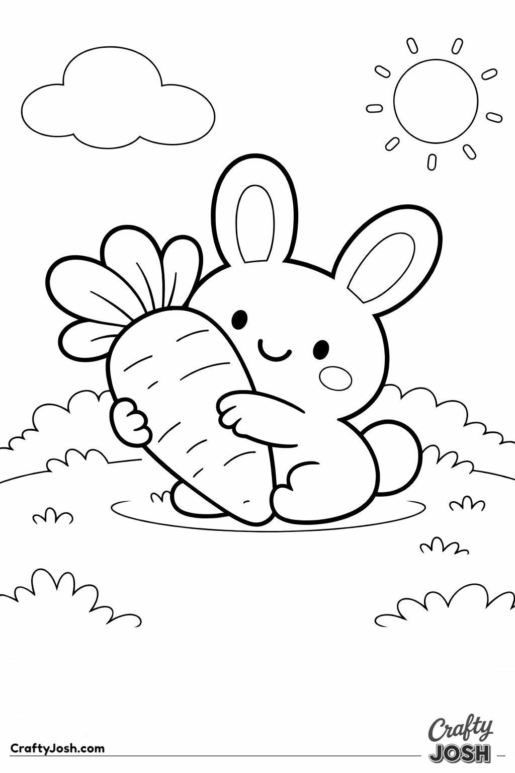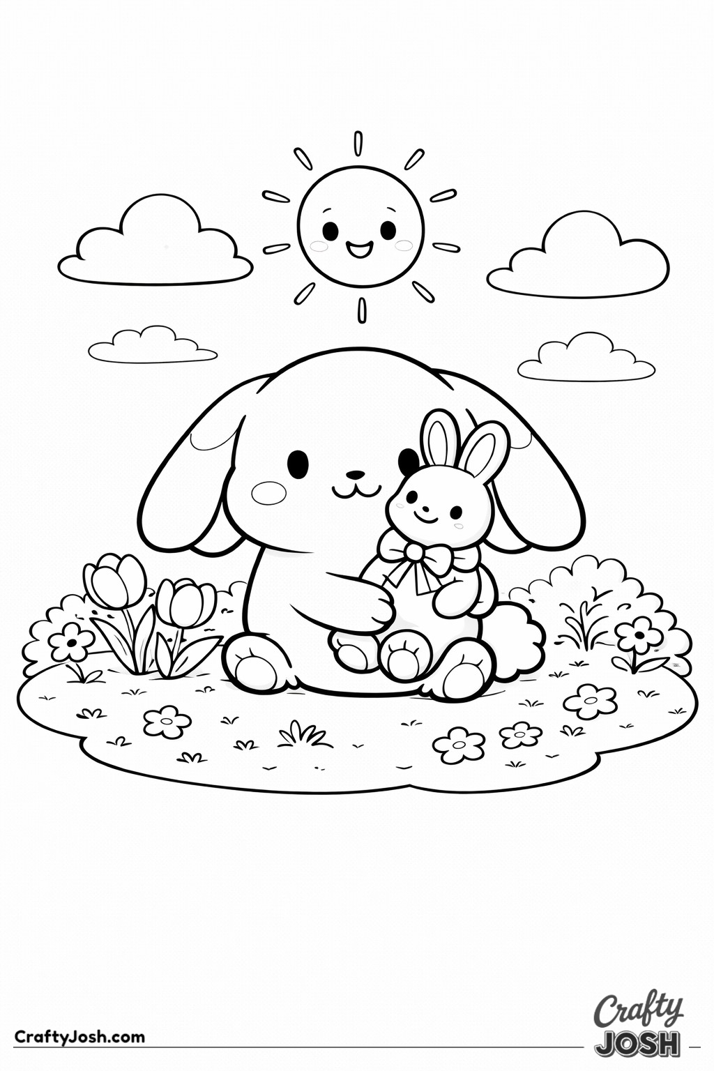 Crafty Josh Easter Bunnies is packed with adorable fluffy friends in the cutest springtime scenes. These cute kawaii bunny designs feature bold outlines, simple shapes, and cheerful details that make them perfect for little kids to color and enjoy.