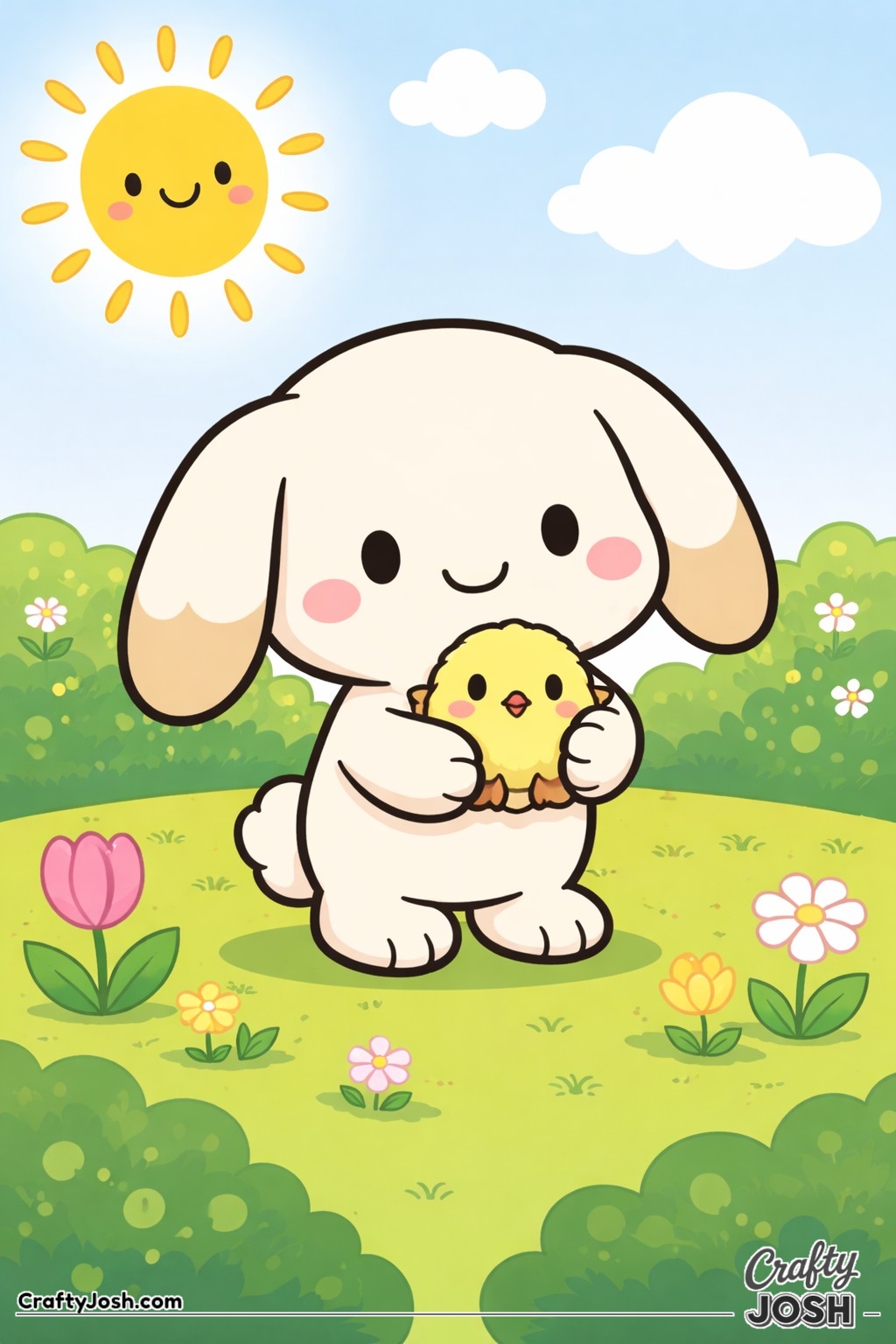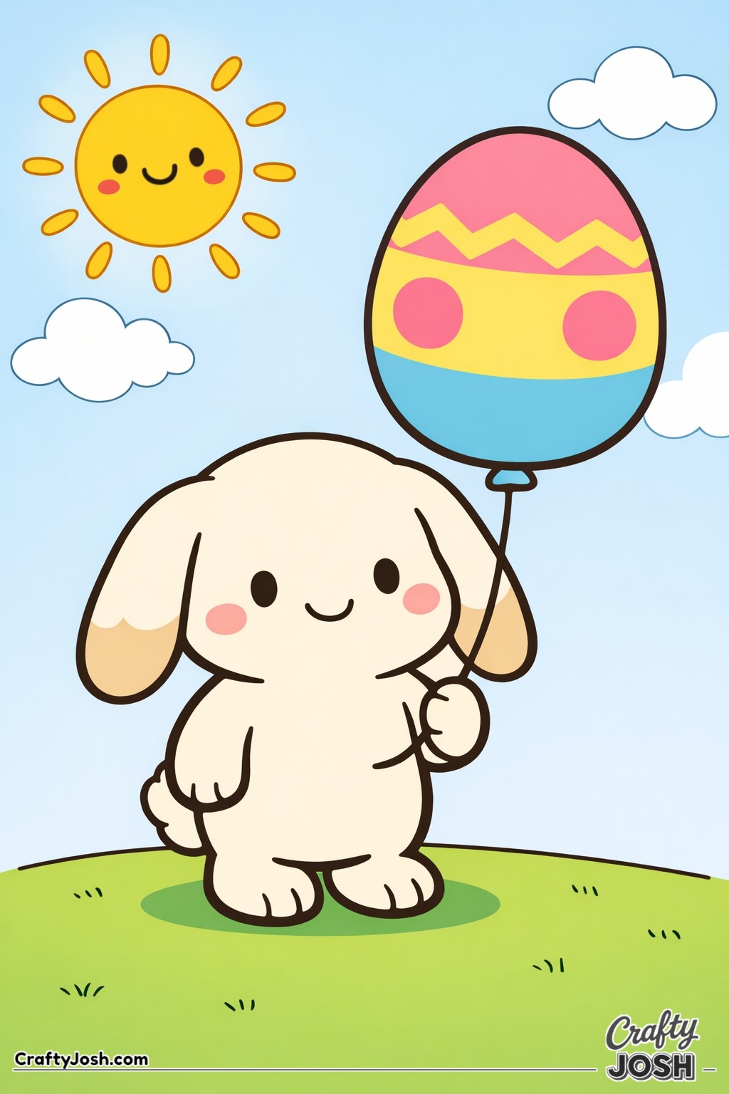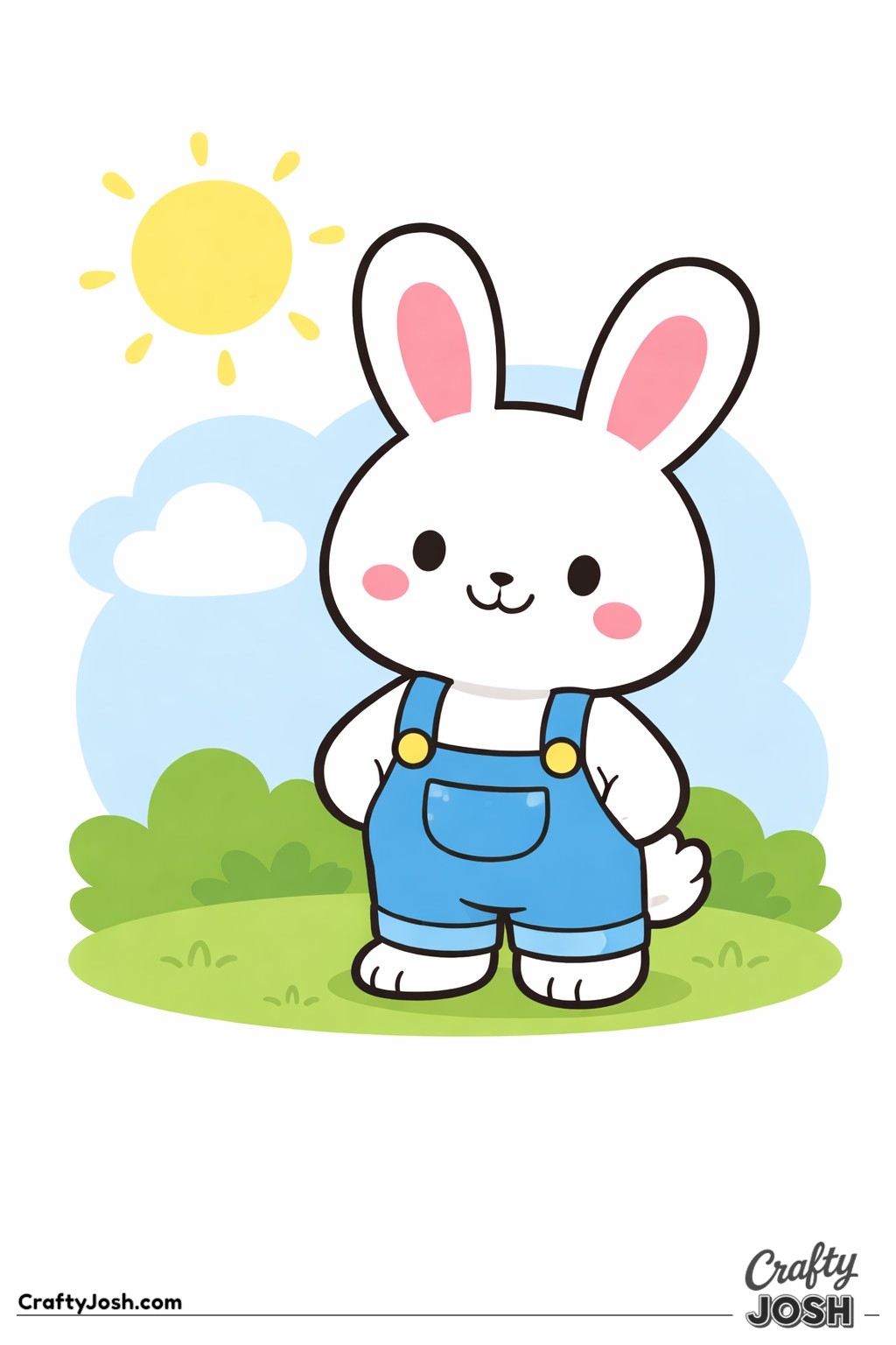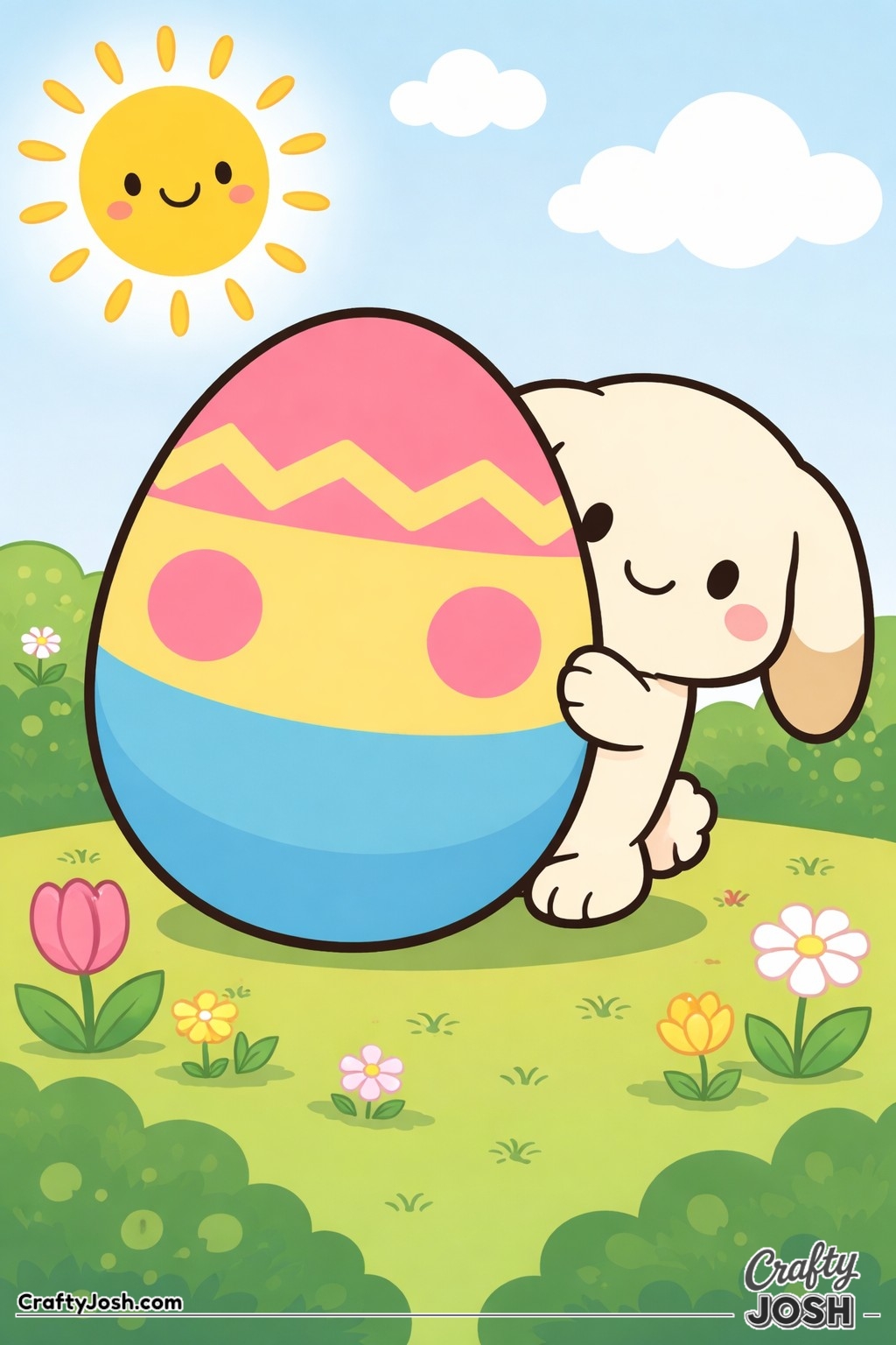 Crafty Josh Easter Bunnies is packed with adorable fluffy friends in the cutest springtime scenes. These cute kawaii bunny designs feature bold outlines, simple shapes, and cheerful details that make them perfect for little kids to color and enjoy.