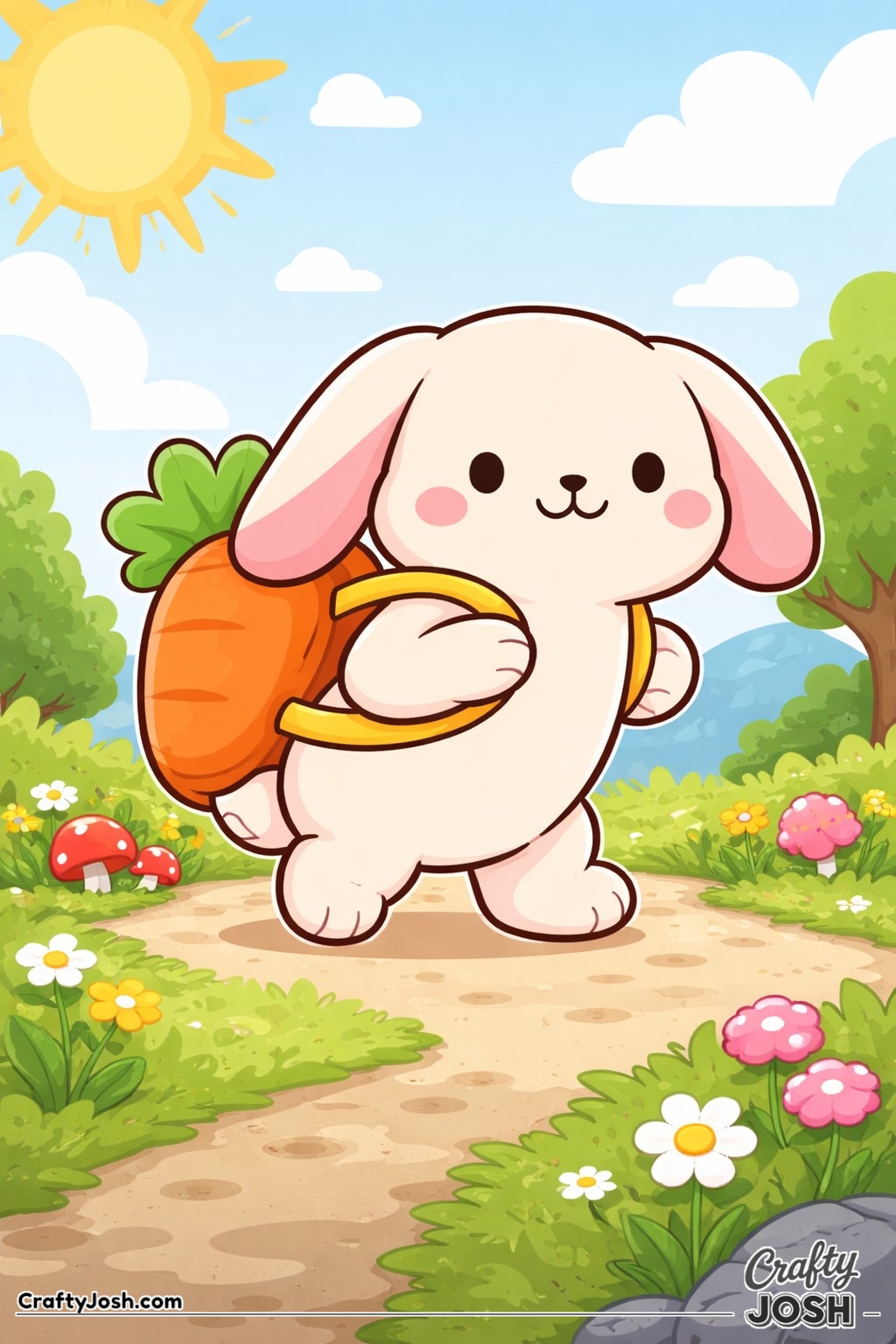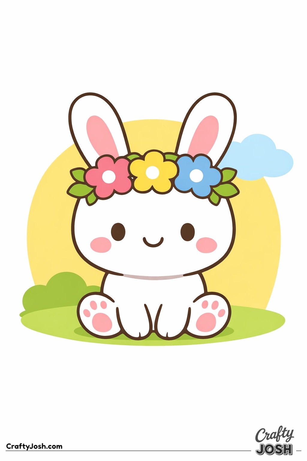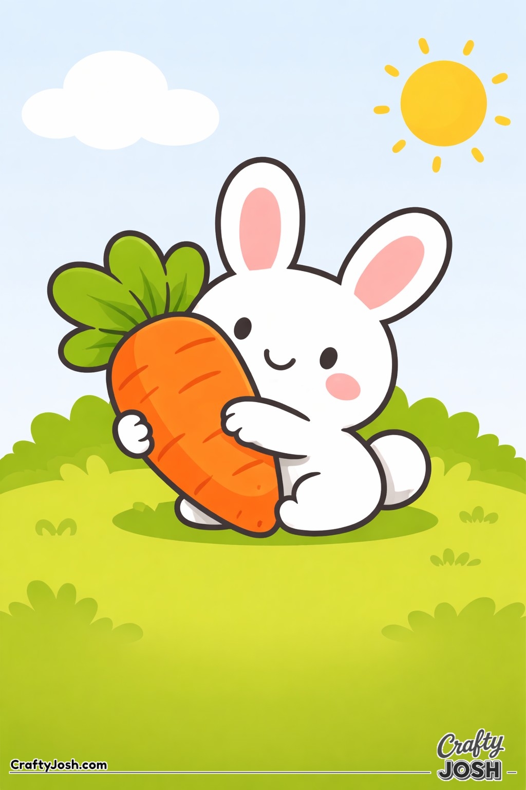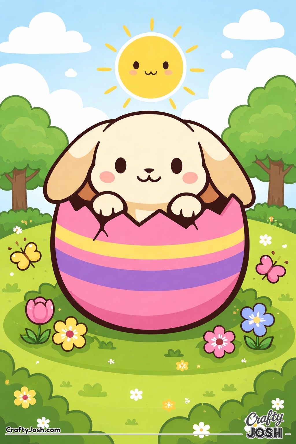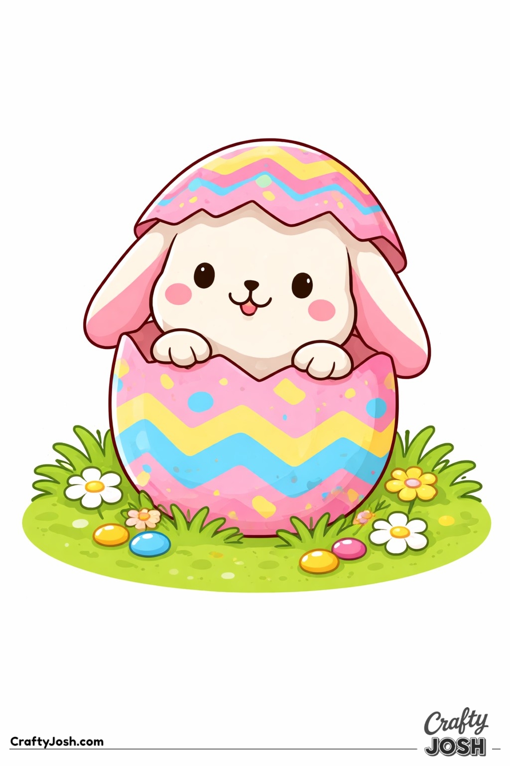 Crafty Josh Easter Bunnies is packed with adorable fluffy friends in the cutest springtime scenes. These cute kawaii bunny designs feature bold outlines, simple shapes, and cheerful details that make them perfect for little kids to color and enjoy.