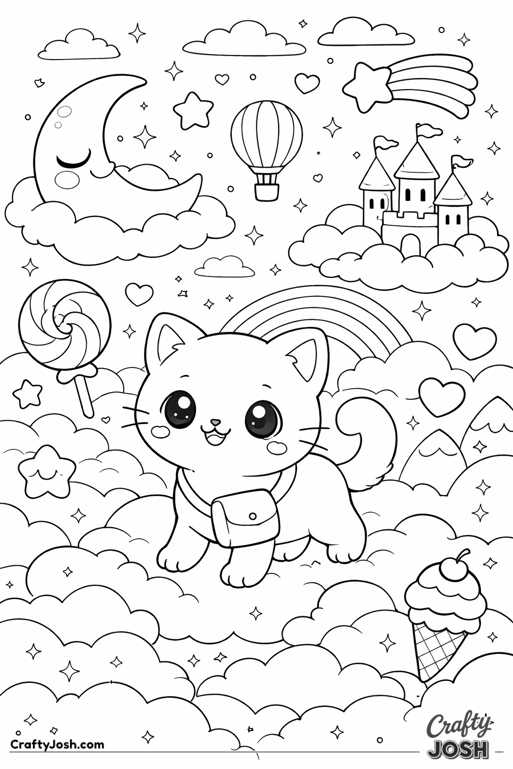 These 98 kawaii cat coloring pages have these cutes cats doing all sorts of things. From big adventures in magical worlds to exploring space or discovering magical caves, this special category is sure to spark your imagination.
