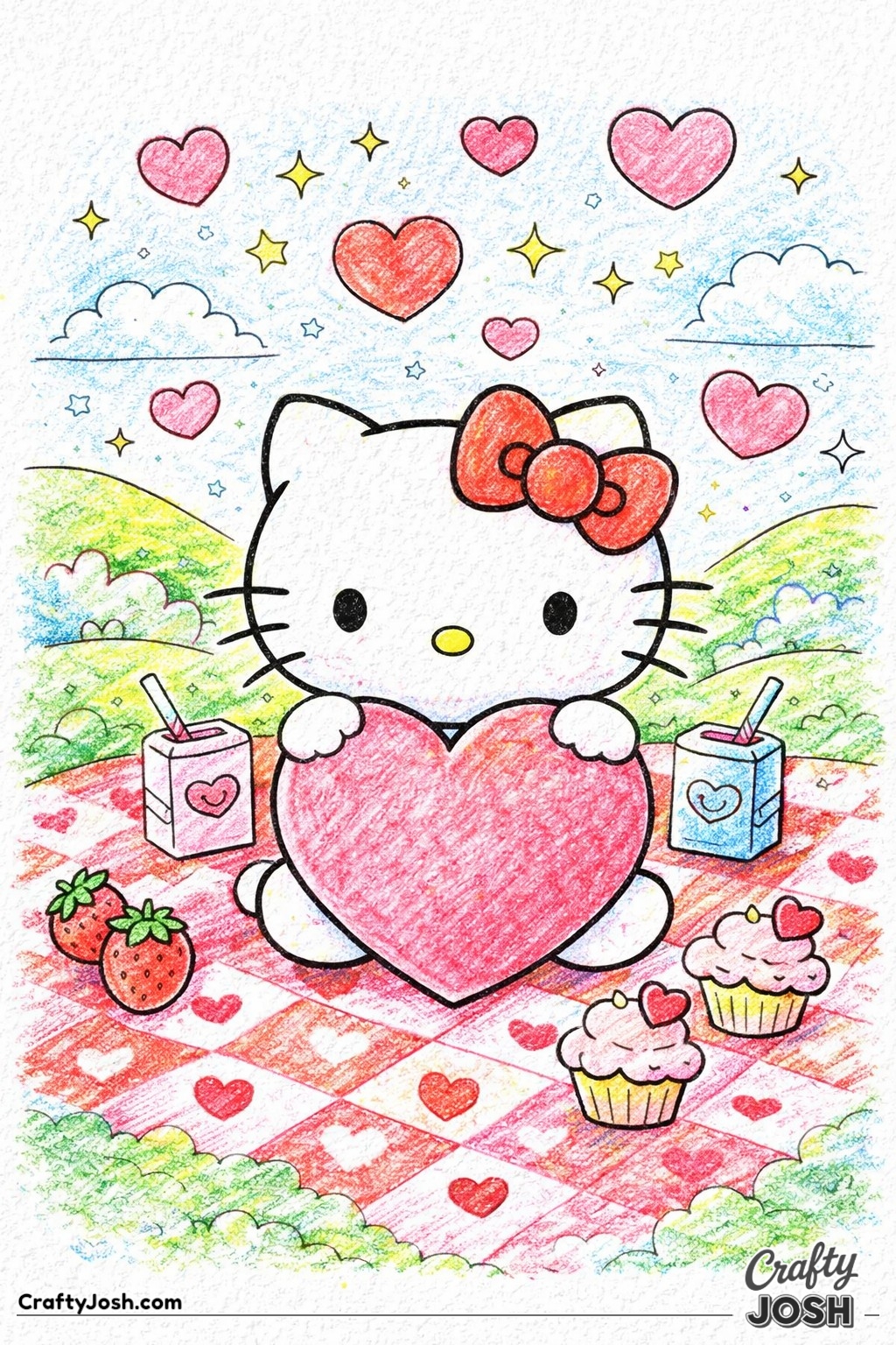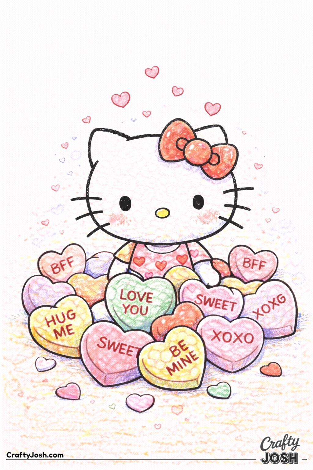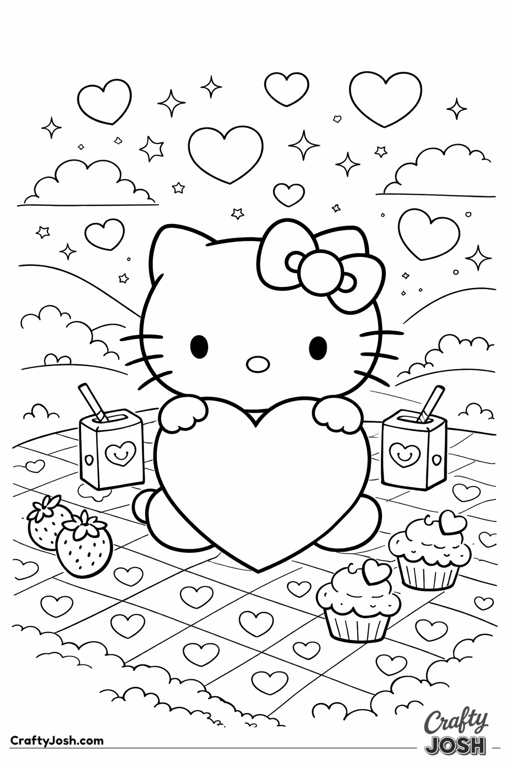 Celebrate Valentine's Day with our 20 Hello Kitty Valentine coloring pages at Crafty Josh.