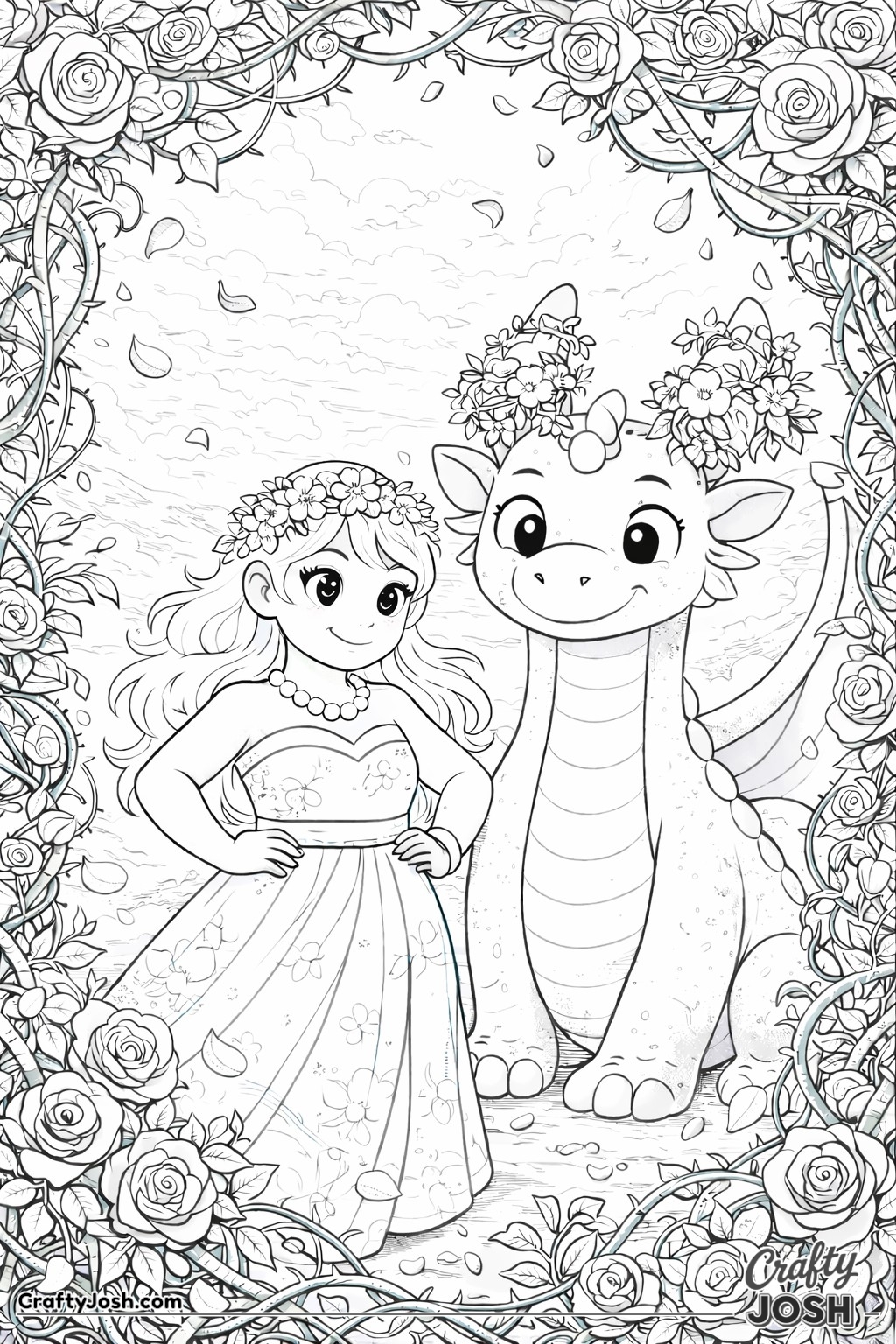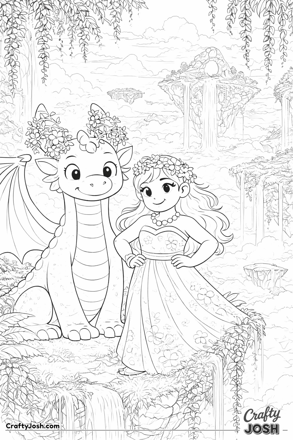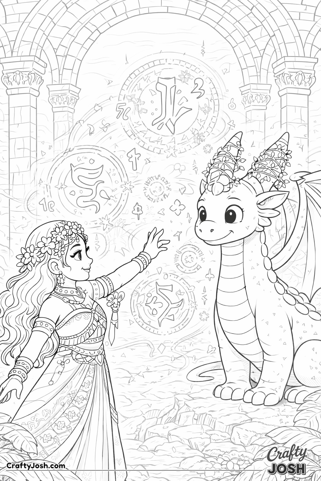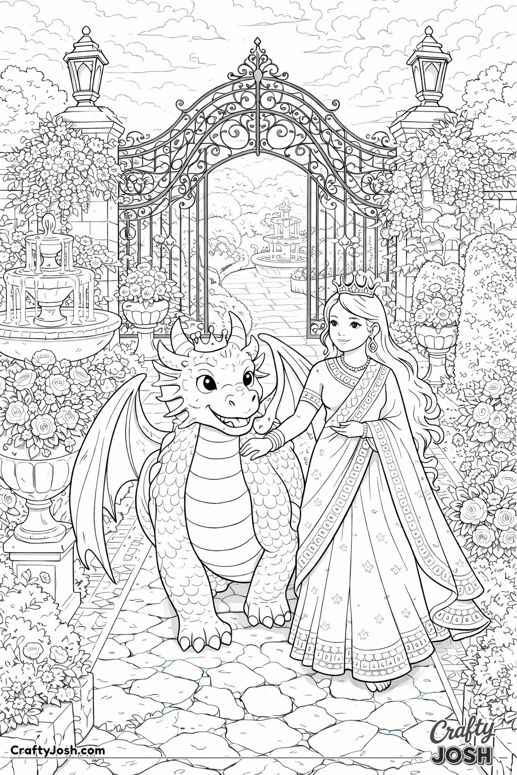 This collection of 20 Detailed Princess and Dragon Realms coloring pages is designed for a more challenging coloring experience while still being fun and relaxing.