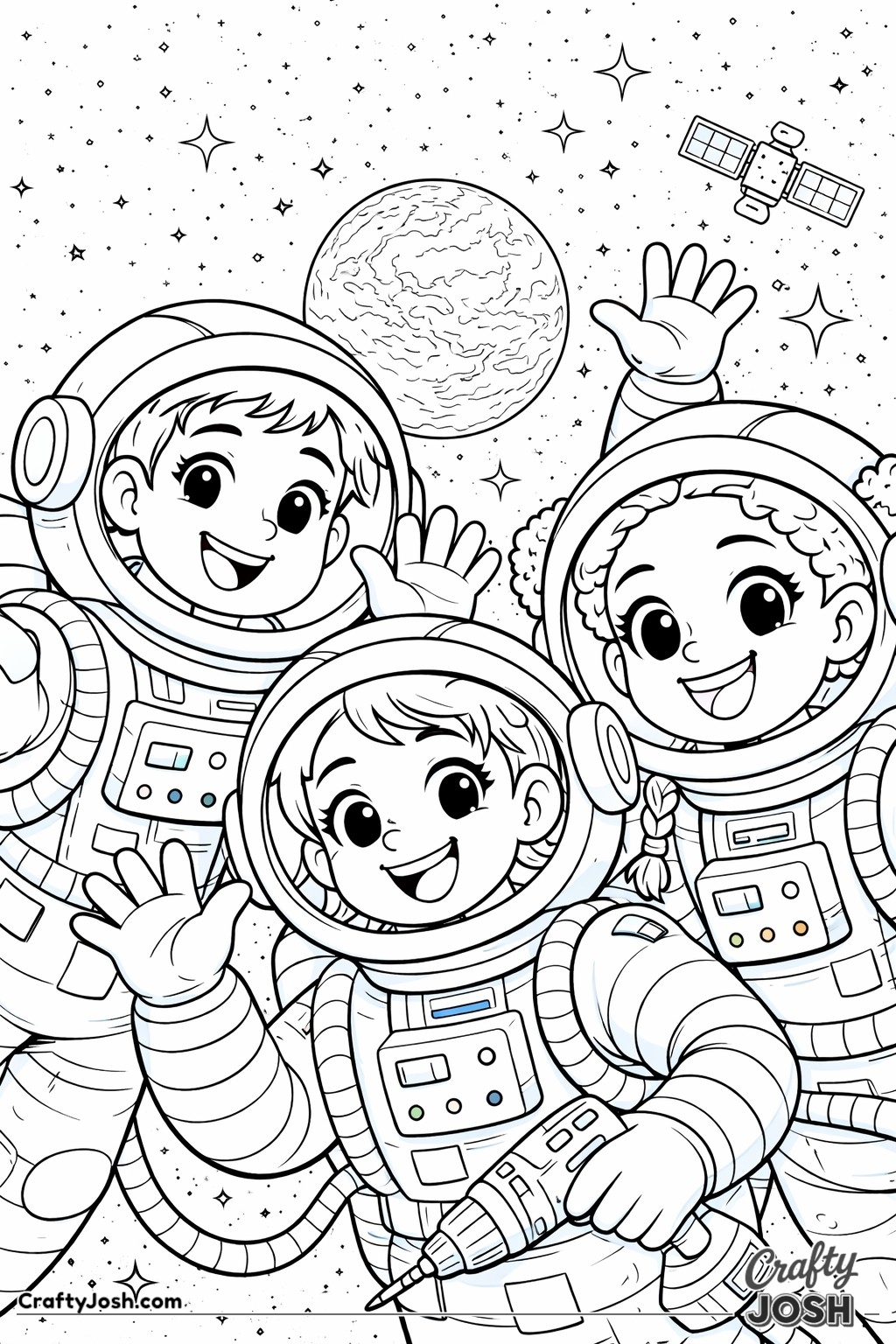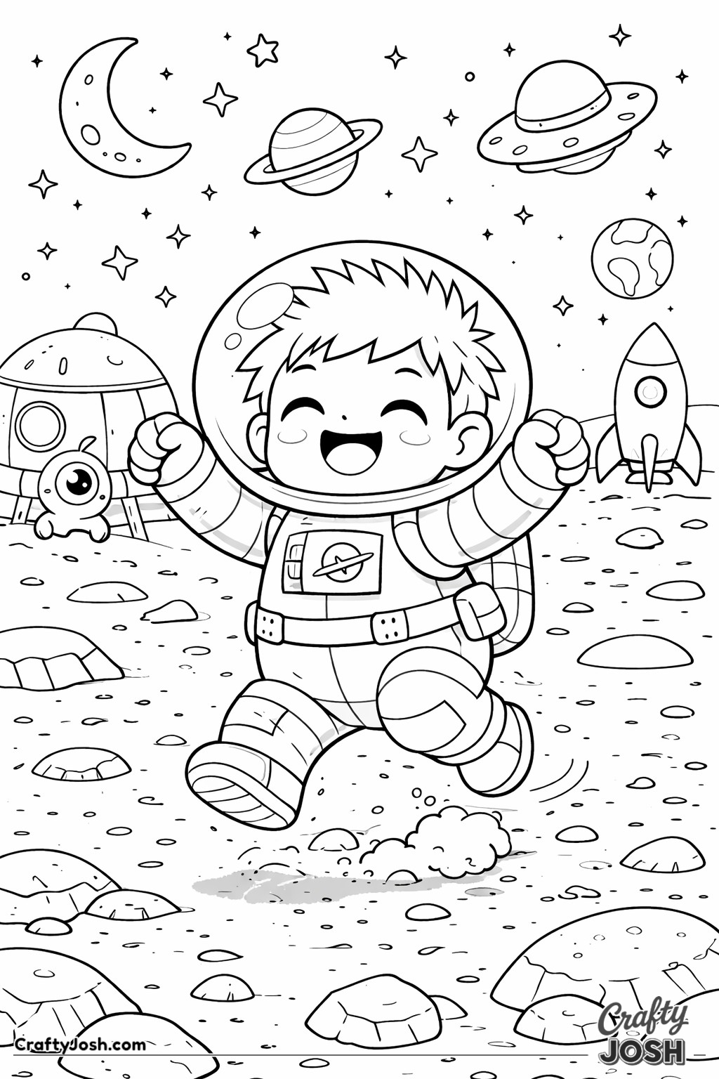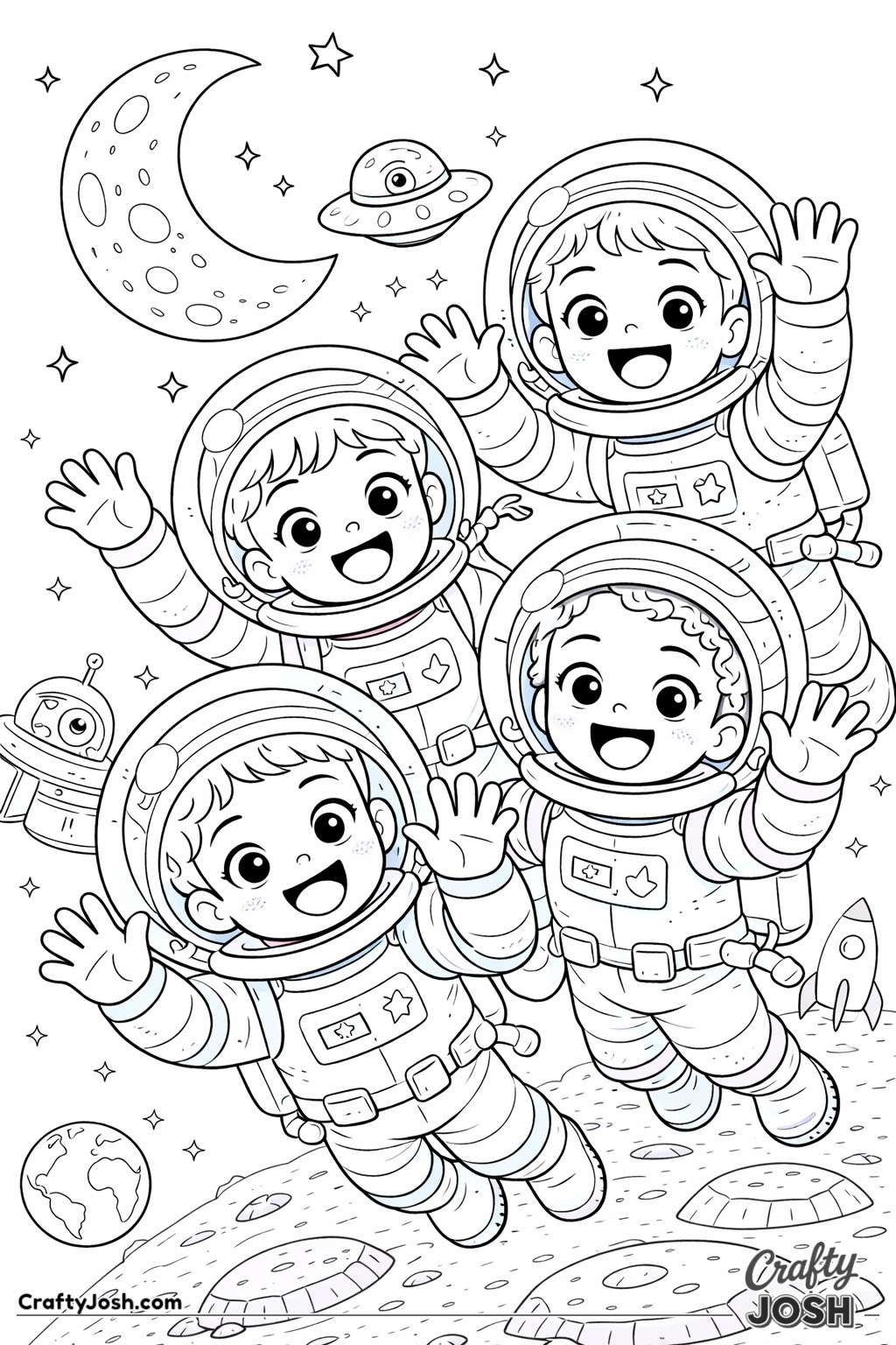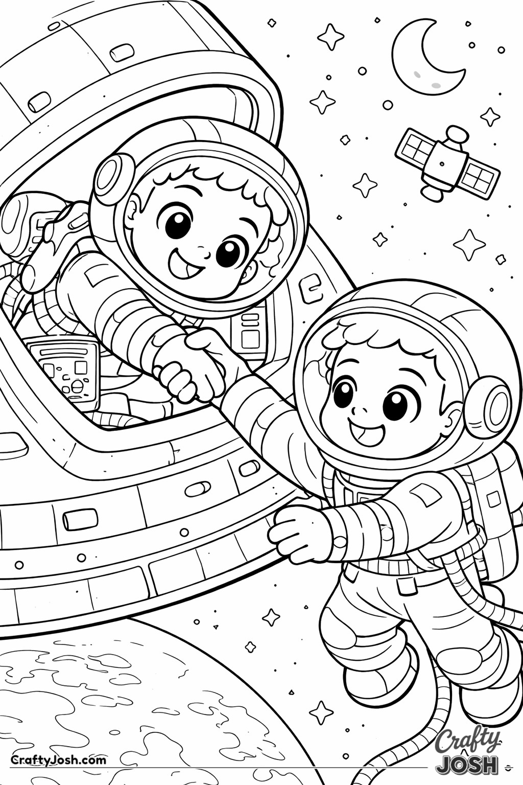 Blast off into space with our collection of 39 astronaut coloring pages made especially for younger children. These fun, friendly designs are perfect for little artists who are interested in space and astronaut adventures.