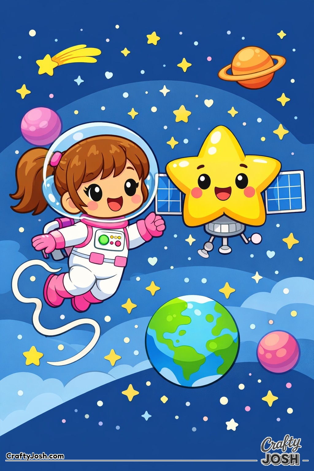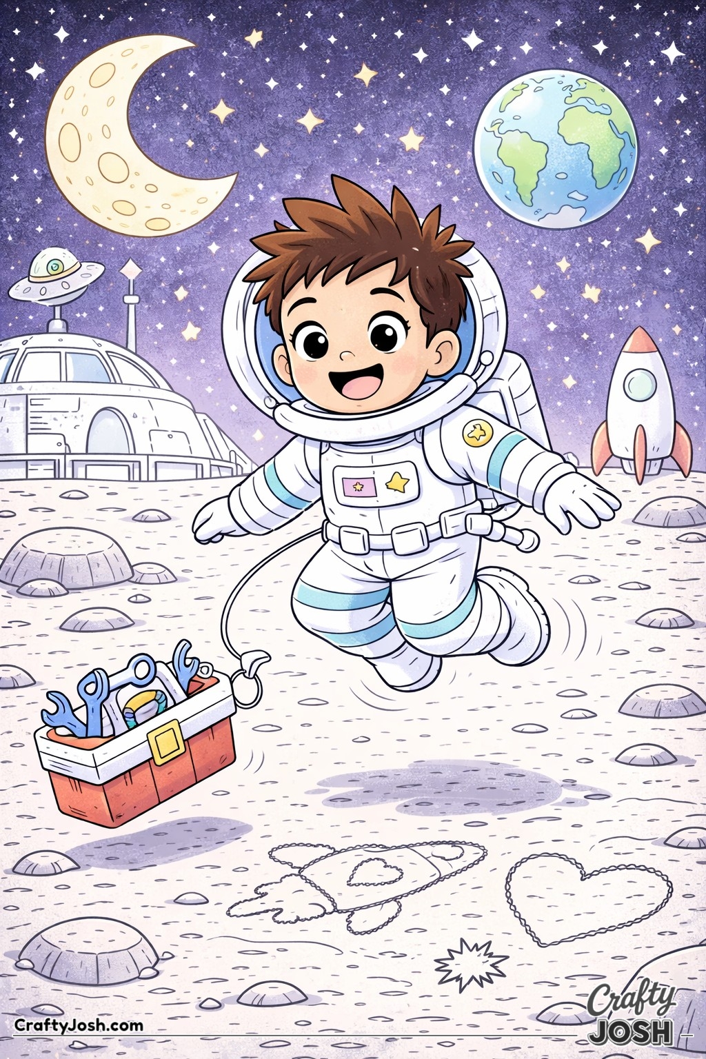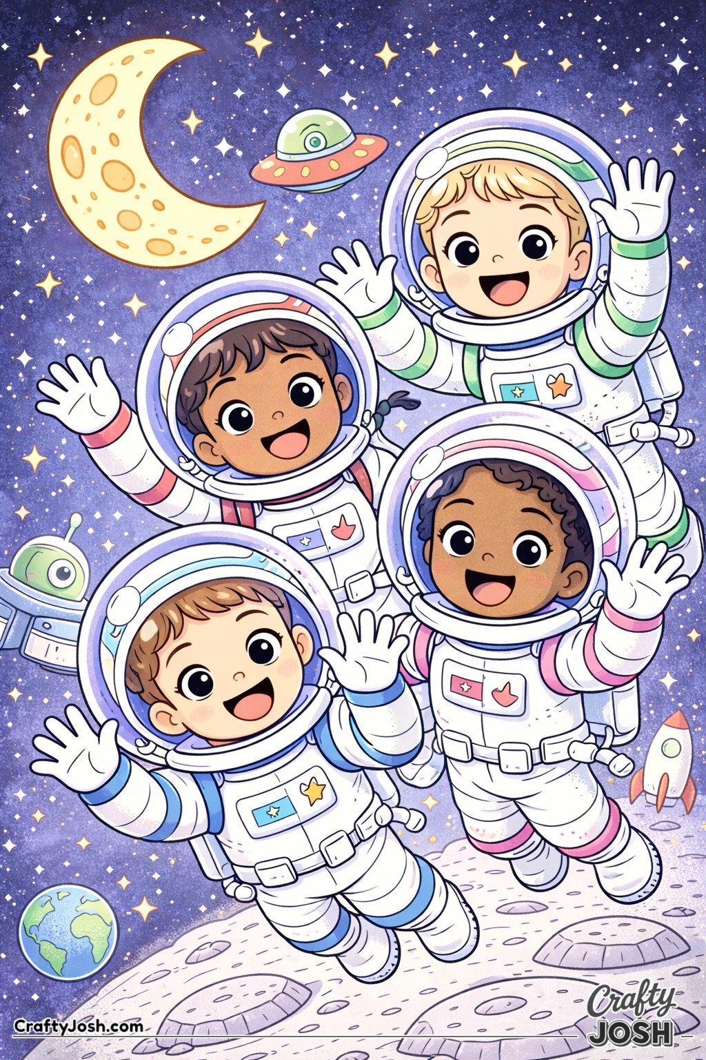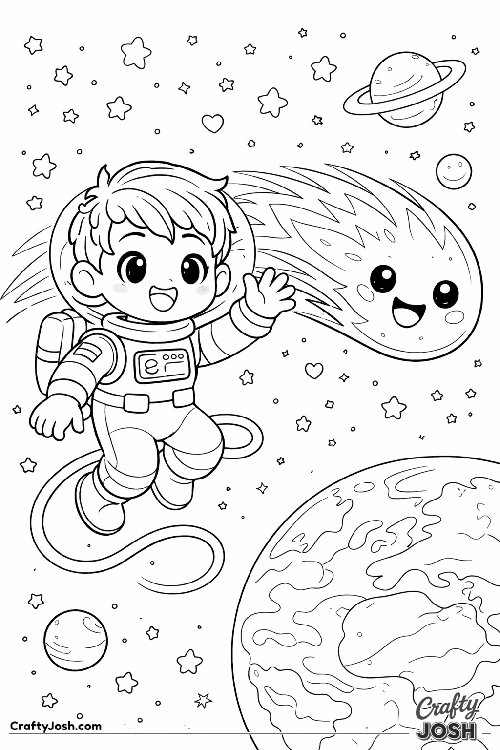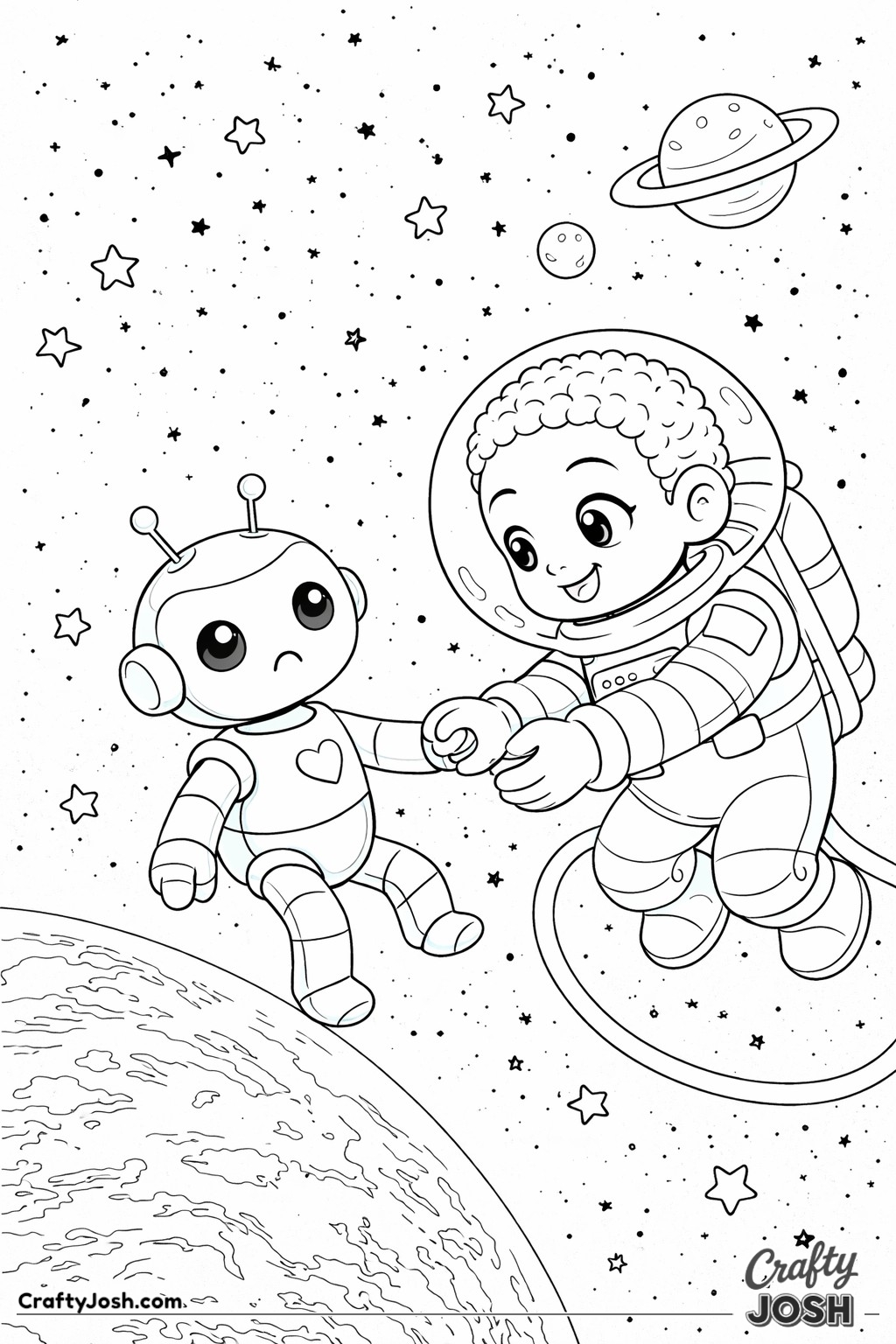 Blast off into space with our collection of 39 astronaut coloring pages made especially for younger children. These fun, friendly designs are perfect for little artists who are interested in space and astronaut adventures.