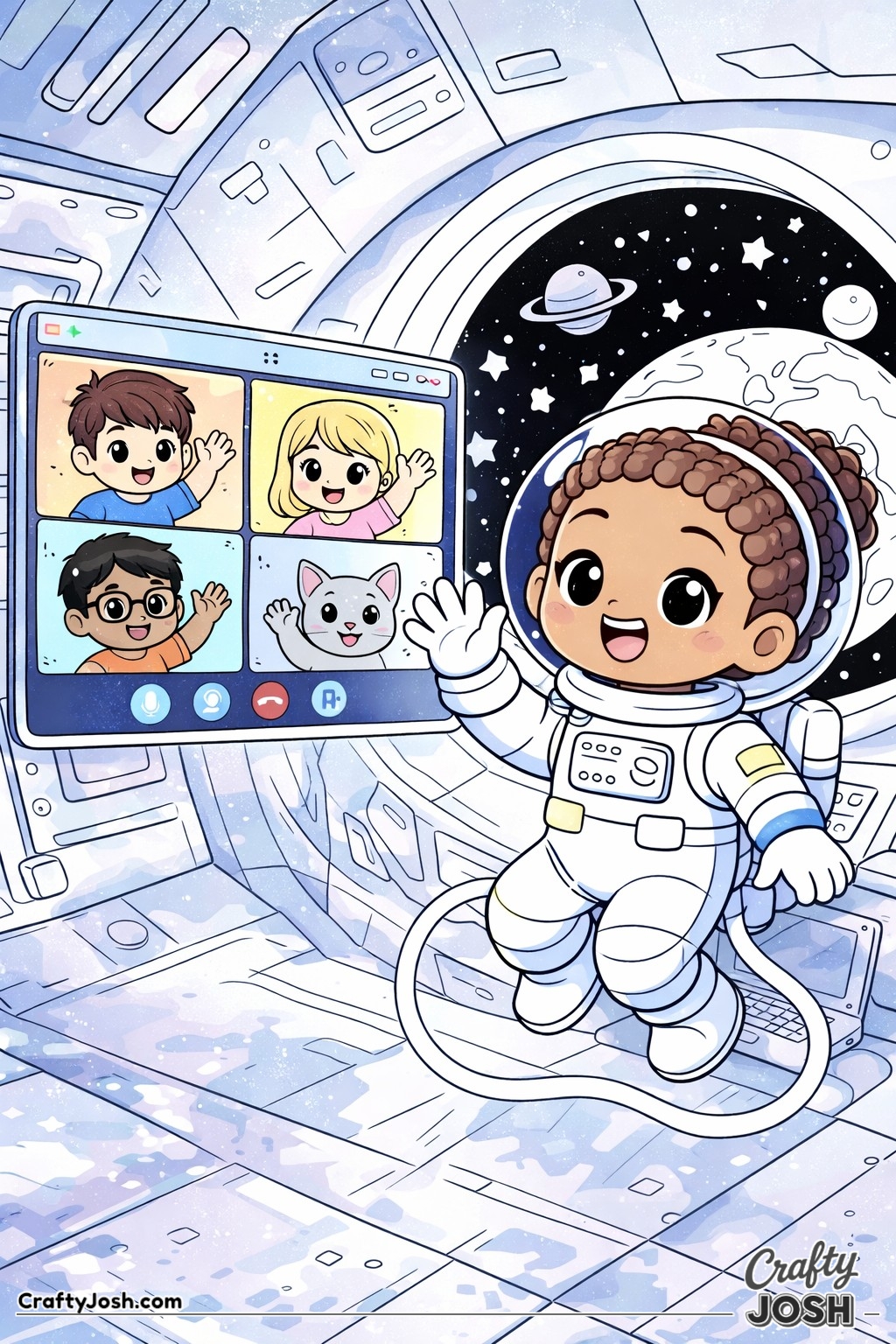 Little ones can also tap the color palette on any image to see a bright, finished example, helping them imagine how their space picture could look when it’s all colored in.
