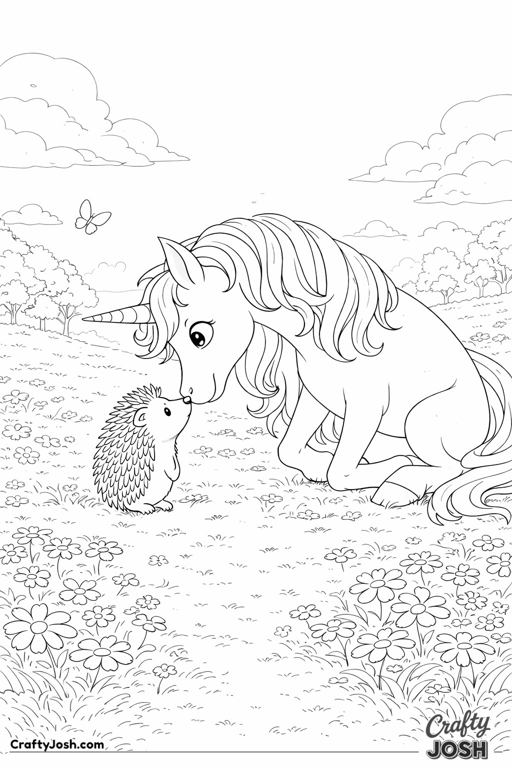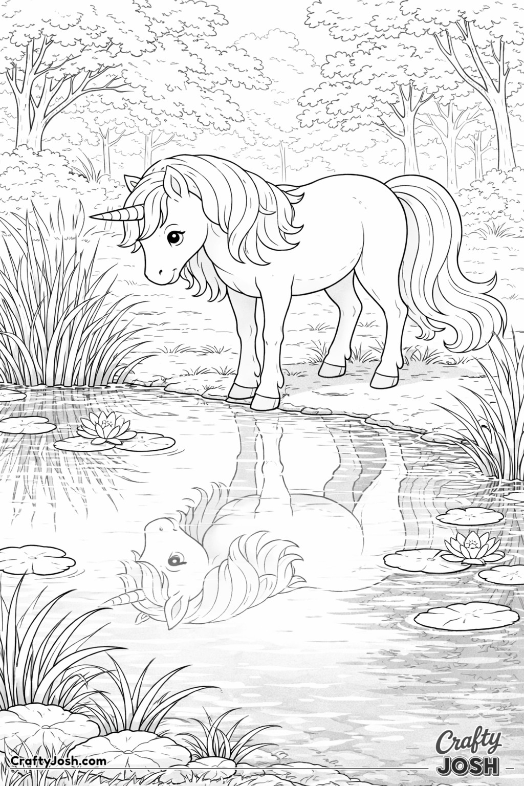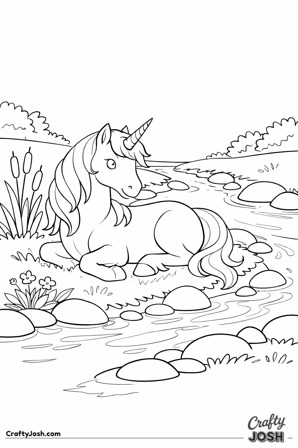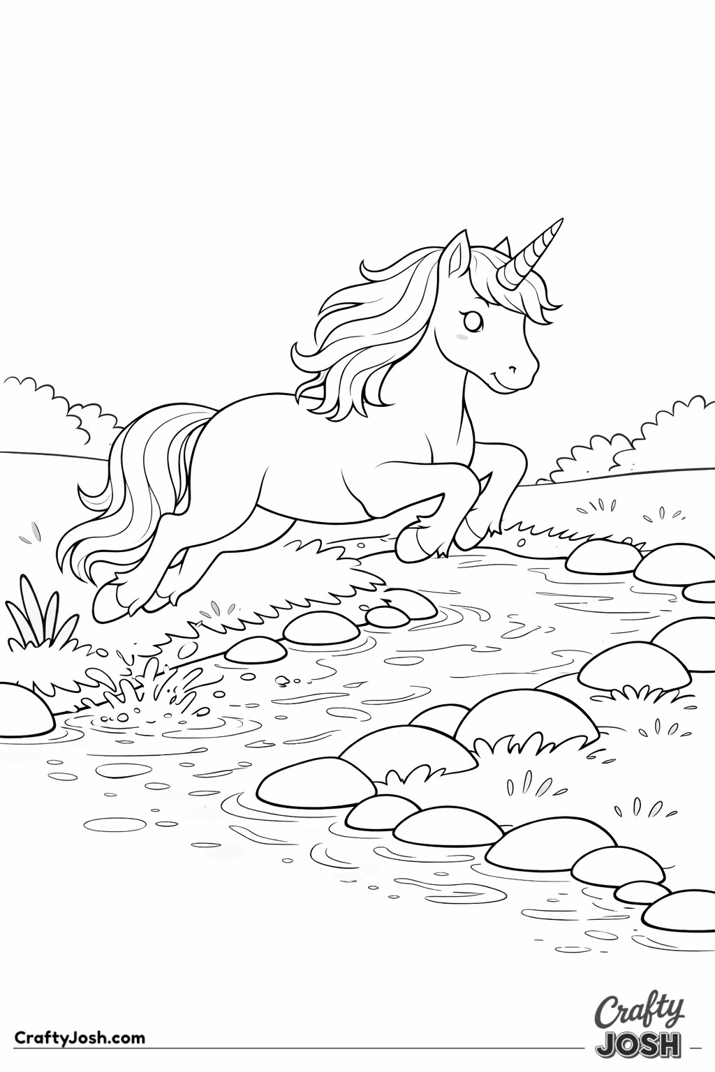In this collection of 39 unicorns in nature coloring pages you can find unicorns splashing through streams, posing in flower-filled meadows, and hanging out in forests.