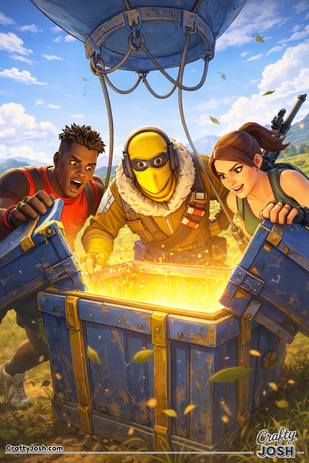 Party signs (“Drop Zone”, “Loot Area”, “Victory Royale”)