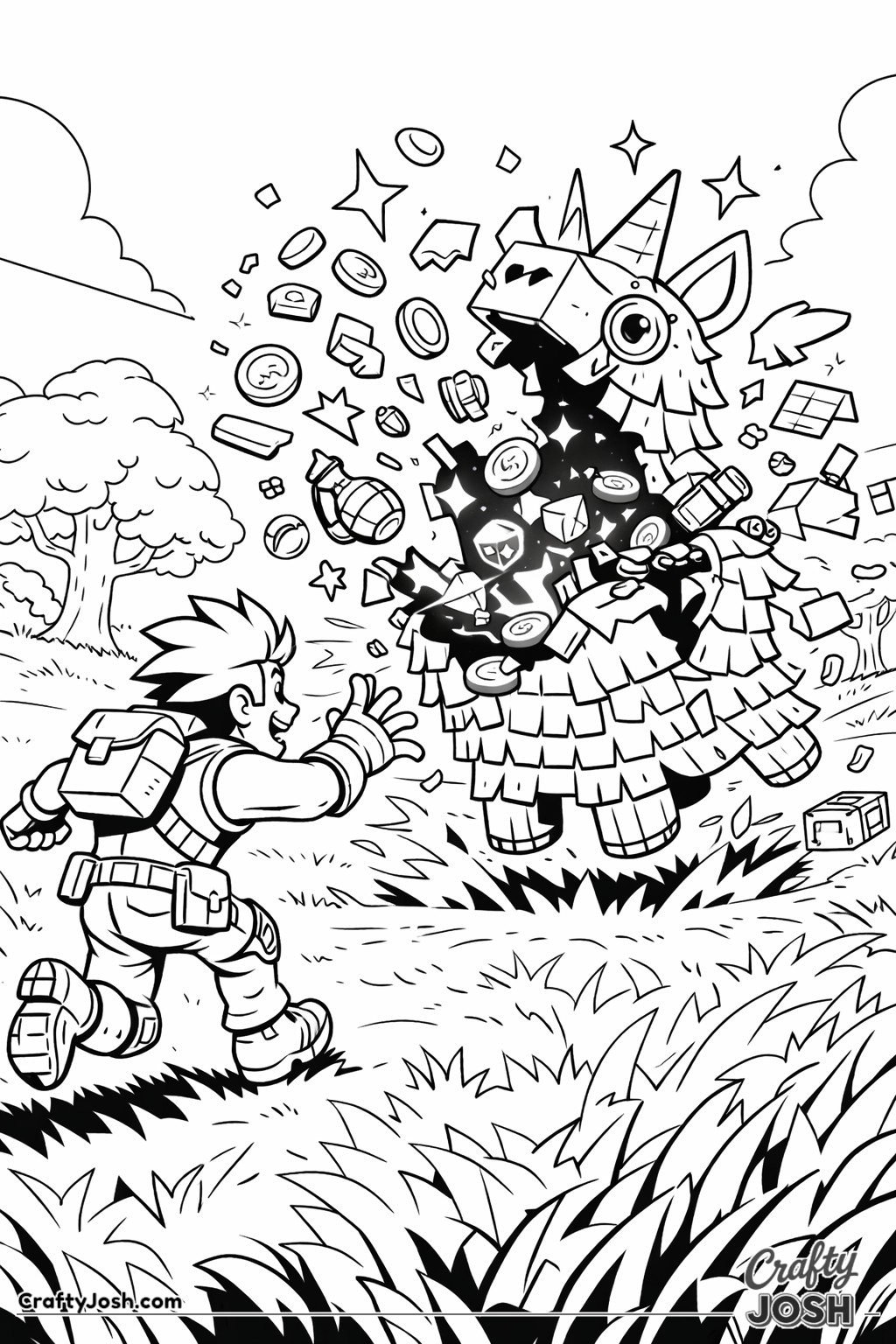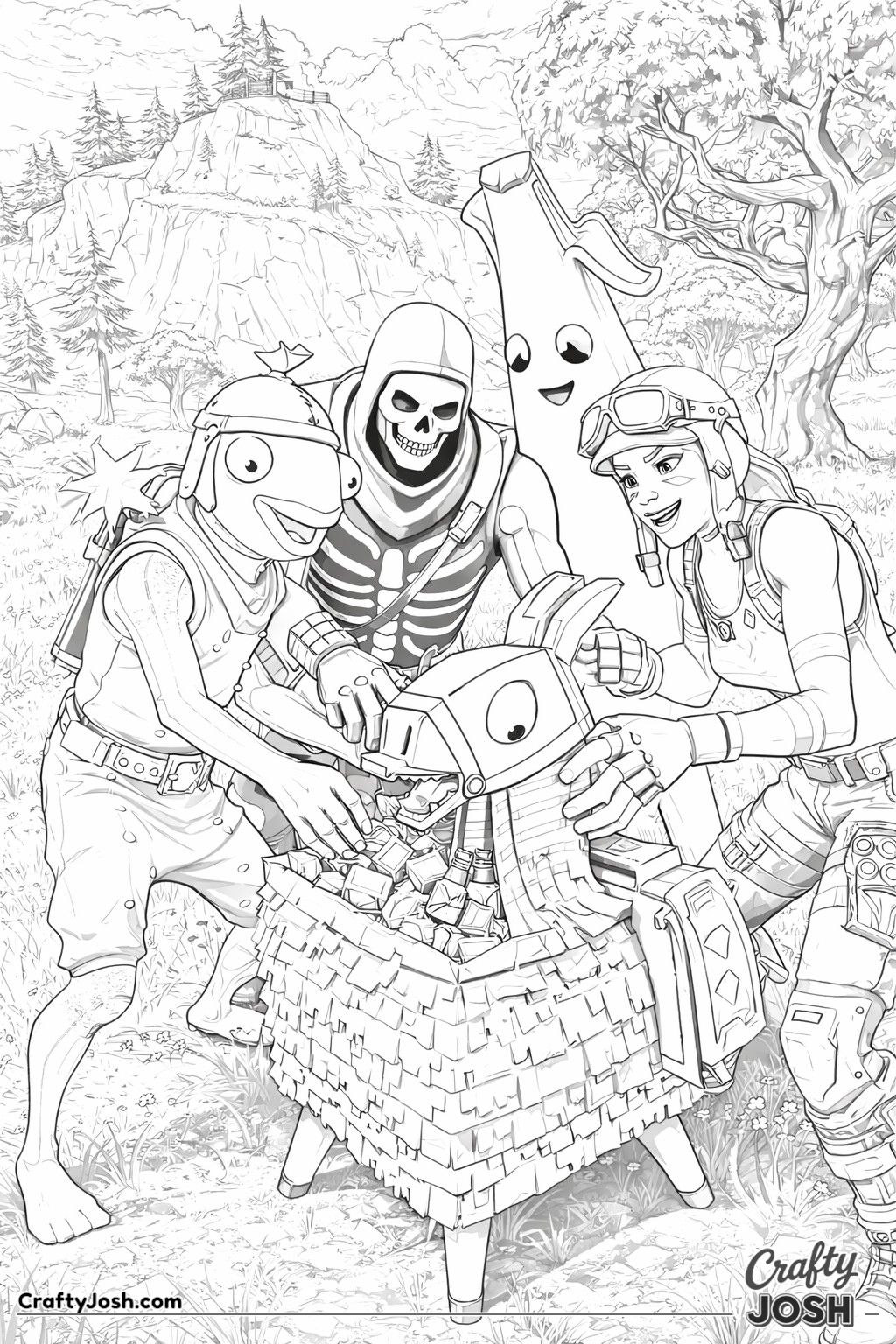 Fortnite coloring pages make excellent budget-friendly party decor.