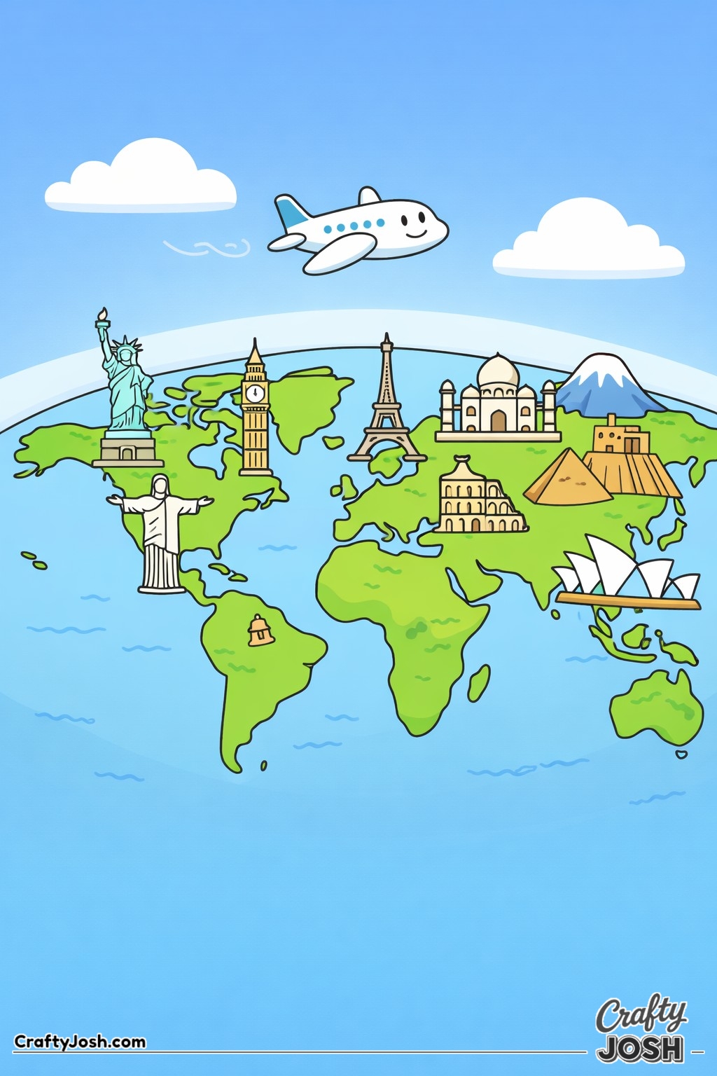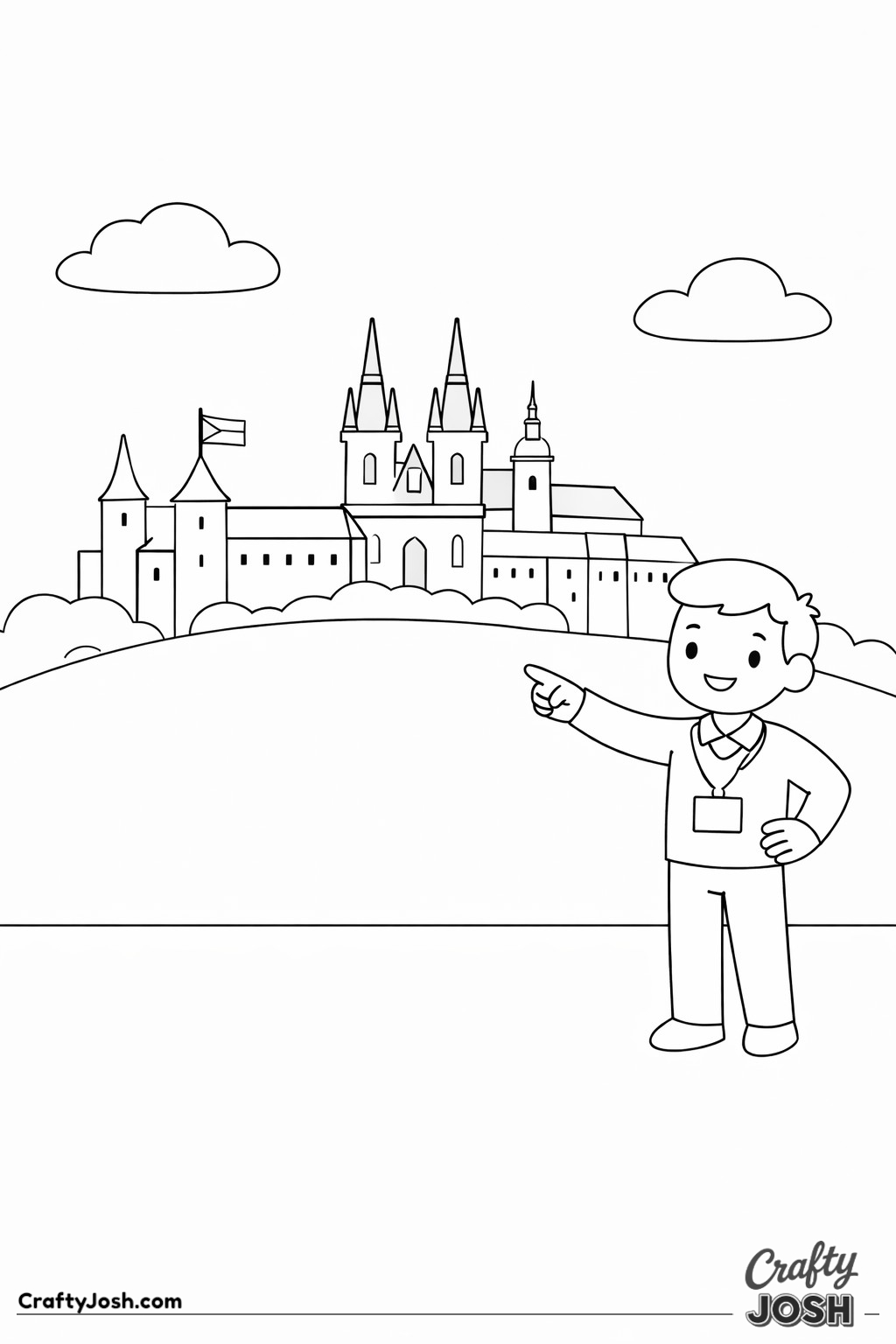 This category features coloring pages inspired by countries across Europe. The illustrations include a mix of famous landmarks, charming towns, natural scenery, and everyday life, all drawn in a clear and child-friendly style.